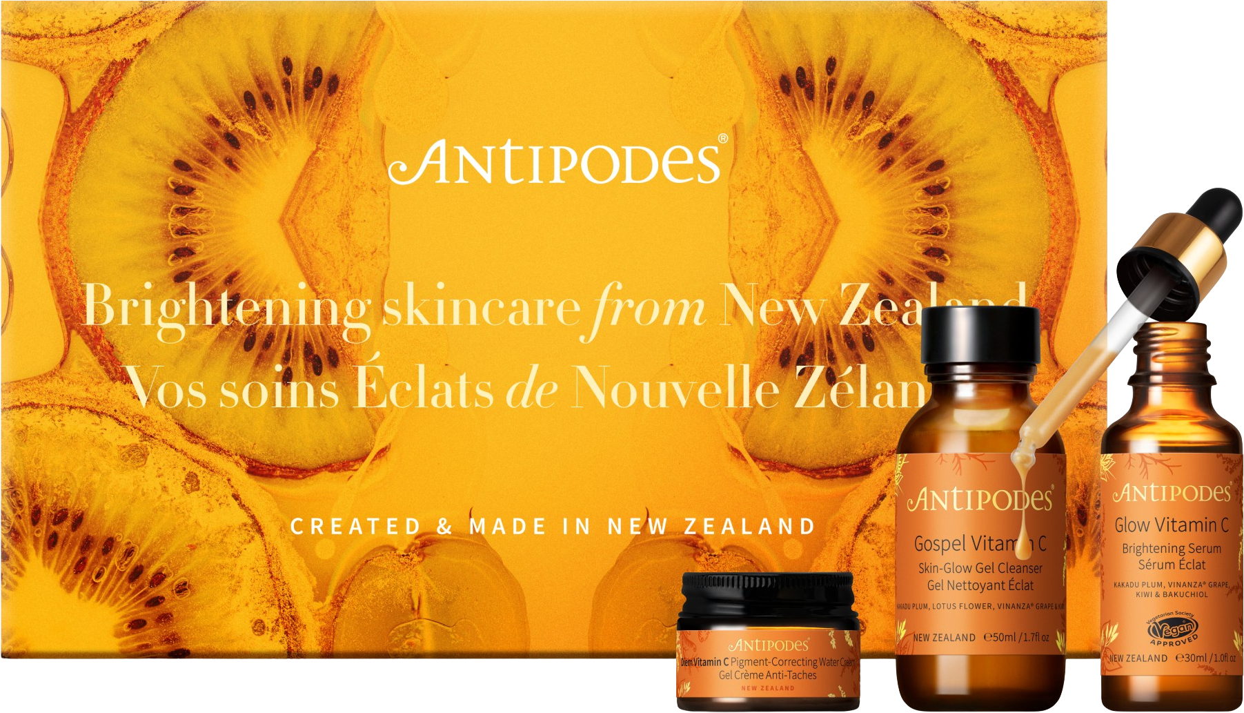 Táto vysokokvalitná a prírodná sada starostlivosti o pleť od Antipodes obsahuje tri produkty, ktoré intenzívne ošetrujú pleť, osviežujú ju a rozjasňujú a trvalo posilňujú jej žiarivosť.