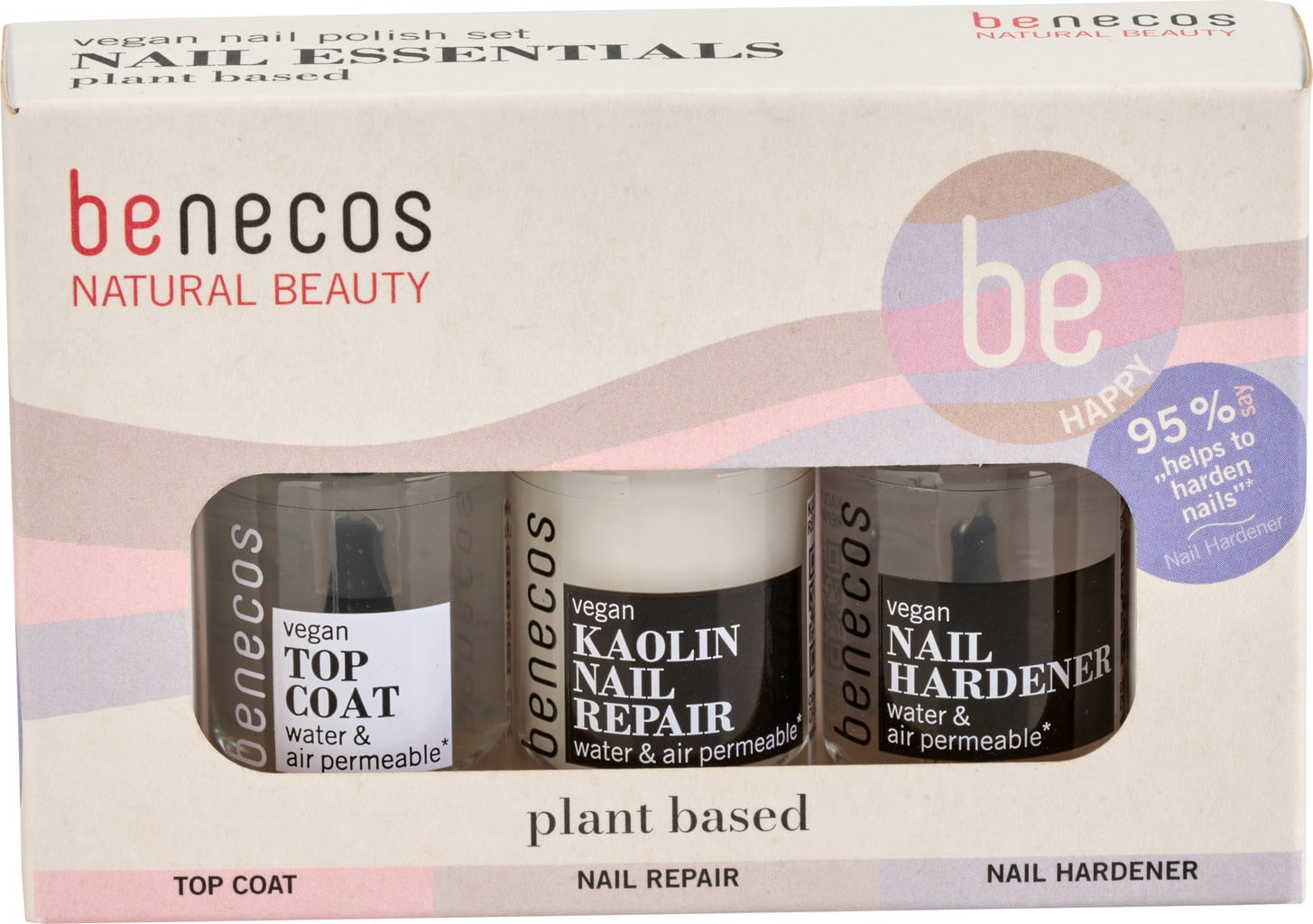 Táto sada obsahuje dva produkty na starostlivosť o nechty a transparentný lak na nechty. Nail Hardener ošetruje nechty extraktom z bambusu, zatiaľ čo Kaolin Nail Repair vyhladzuje nerovnosti a ryhované nechty. Nakoniec transparentný Top Coat lak poskytuje upravený vzhľad a lesklý finish.