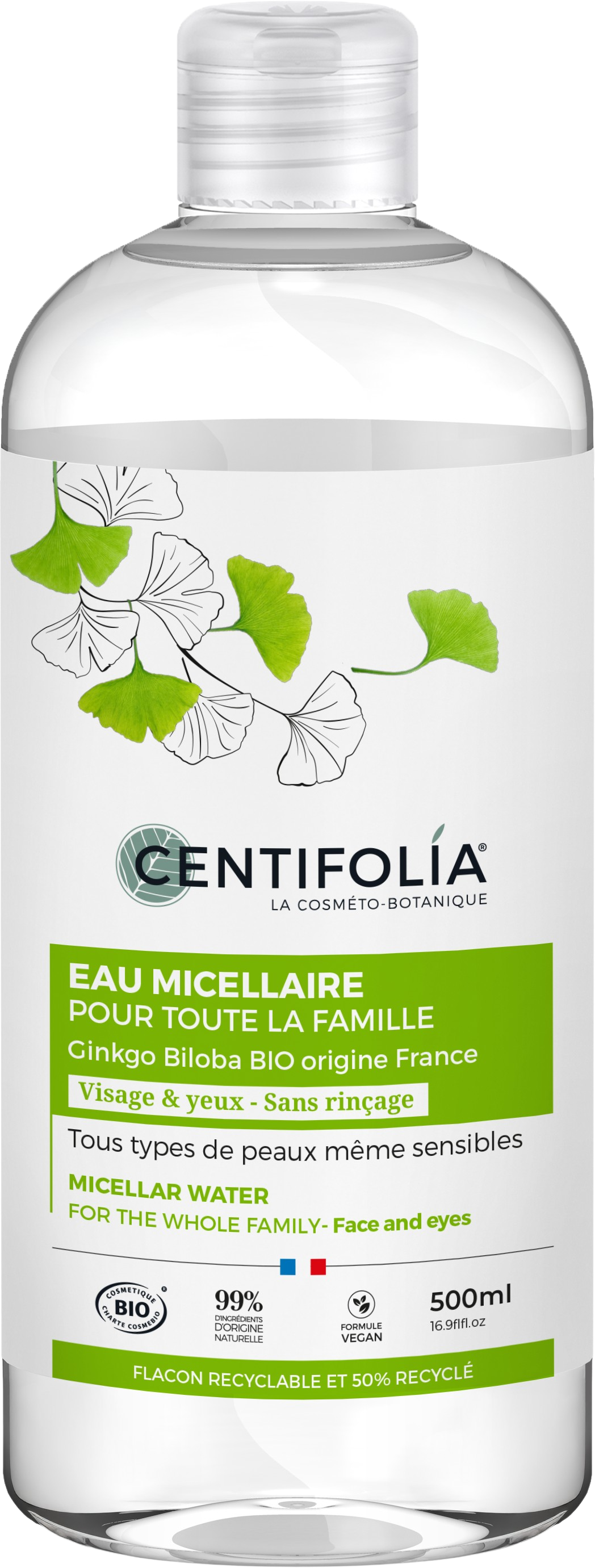 Táto micelárna voda je ideálna na jemné čistenie a osvieženie pokožky celej rodiny bez toho, aby ju vysušovala. Odstraňuje nečistoty, stopy znečistenia a dokonca aj vodeodolný make-up. Po použití je pleť bez napätia, pričom zloženie rešpektuje prirodzenú rovnováhu pleti a zanecháva ju sviežu, čistú a s príjemným pocitom. Je vhodná pre citlivú pleť a oči.