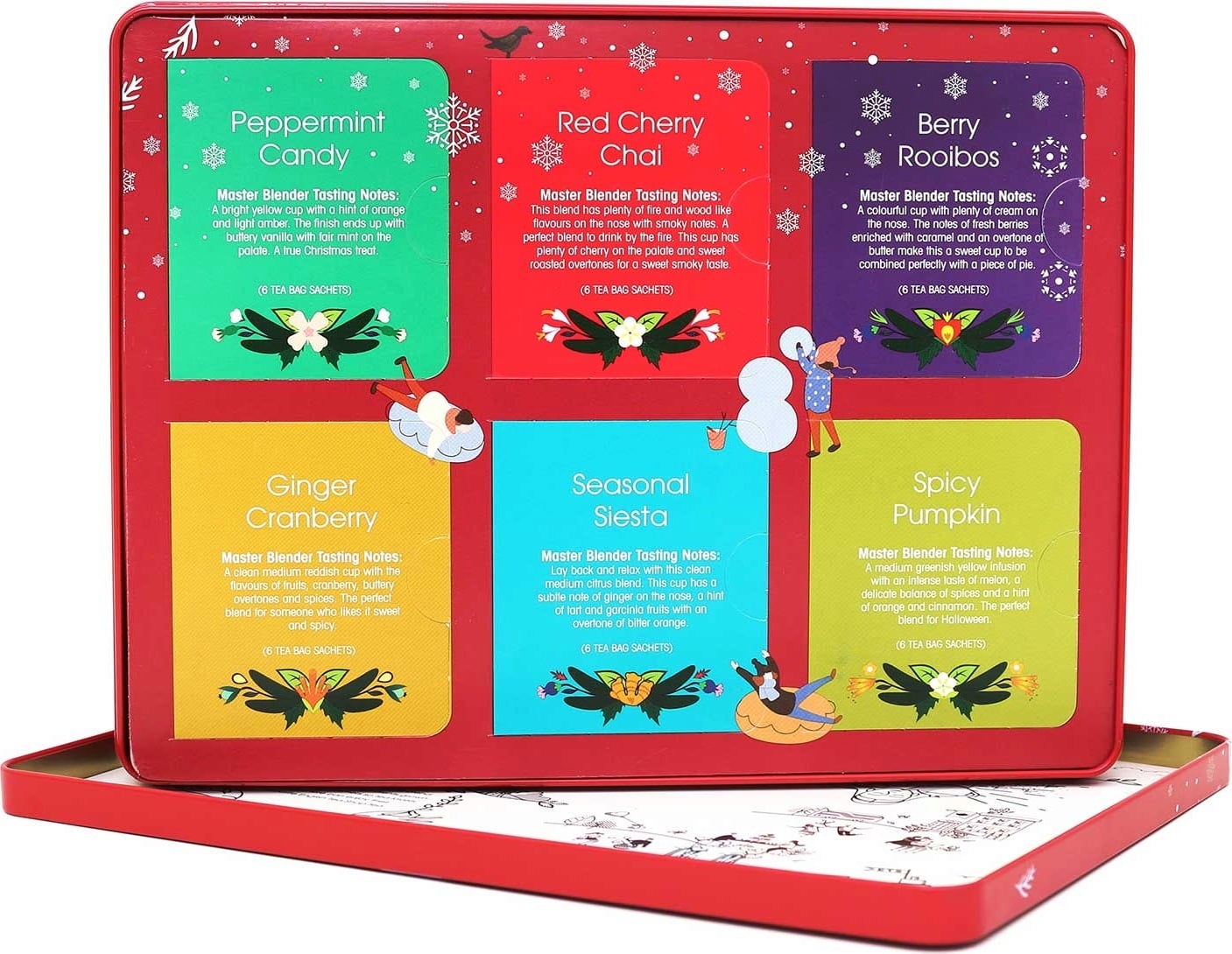Každý druh je zastúpený 6 vrecúškami - takže môžete ochutnávať, zdieľať, vymieňať a porovnávať do sýtosti! Kovová dóza obsahuje celkom 36 čajových vrecúšok.