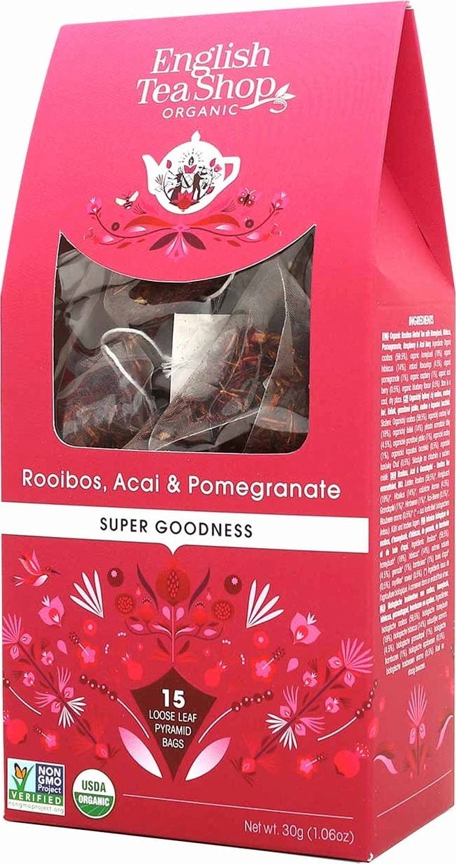 English Tea Shop Organic Rooibos, Acai & Pomegranate, 15 čajových vrecúšok (30 g)