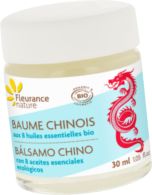 Čínsky balzam ponúka relaxačné vlastnosti prostredníctvom ôsmich éterických olejov, ako je napríklad mäta, eukalyptus, niaouli, klinček, zázvor, tymián, škorica a ylang ylang. Jeho základ z kokosového a marhuľového oleja, bambuckého masla a včelieho vosku sa obzvlášť príjemne nanáša a dá sa ľahko vmasírovať.