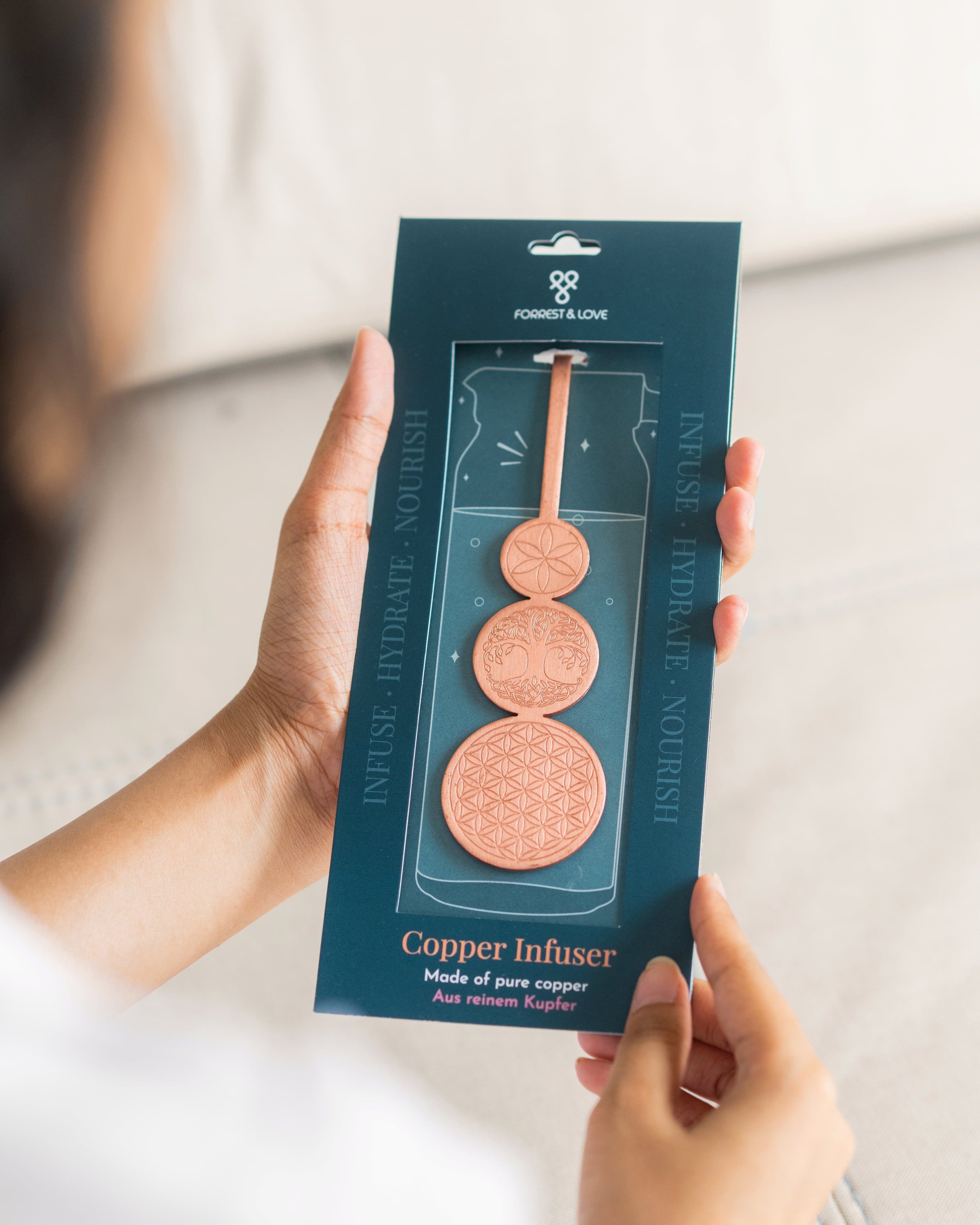 Praktický a precízne ručne vyrobený vitalizátor od FORREST & LOVE môžete vložiť takmer do akejkoľvek nádoby a tak môžete naplno vychutnať osviežujúcu a vitalizujúcu medenú vodu! Štýlový dizajn vás presvedčí spolu s celoživotnou trvácnosťou, ako aj šetrnou, trvalo udržateľnou a férovou výrobou.