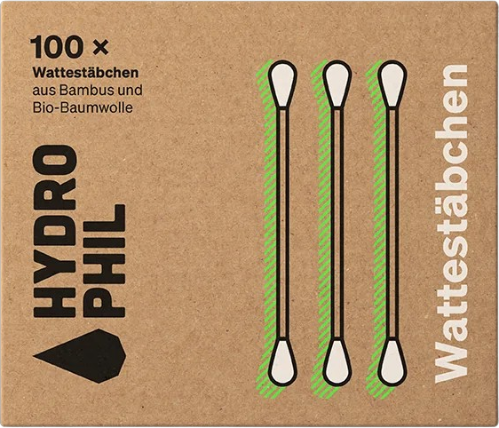 Vatové tyčinky od spoločnosti Hydrophil sú vyrobené z mäkkej bio bavlny a bambusu, rýchlo obnoviteľnej suroviny, ktorá z tohto výrobku robí ekologickú alternatívu k bežnej plastovej verzii. Tyčinky sú 100 % biologicky rozložiteľné, čo je obzvlášť dôležité, pretože stovky z nich každoročne končia v odpadových vodách. Jemne si nimi vyčistíte zvukovod alebo ich môžete použiť na čistenie technických zariadení.