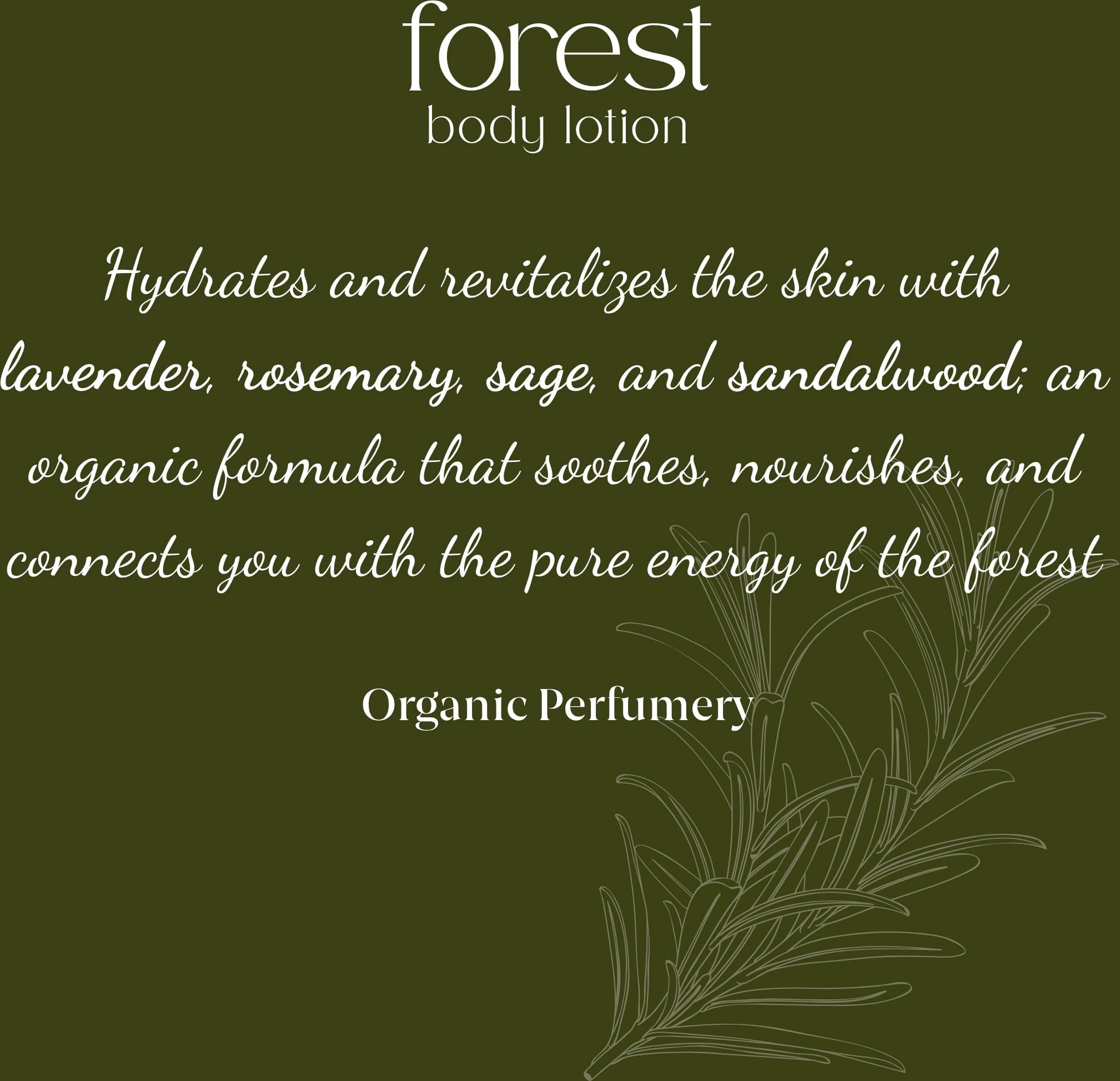Parfumovaný Forest Biorganic Body Lotion ponúka sviežu, energickú vôňu s ošetrujúcimi vlastnosťami pre všetky typy pleti. Zahalí vašu pokožku sviežou vôňou, ktorá predstavuje prítomnosť, silu a spojenie so zemou - ako prechádzka stredomorskými lesmi.