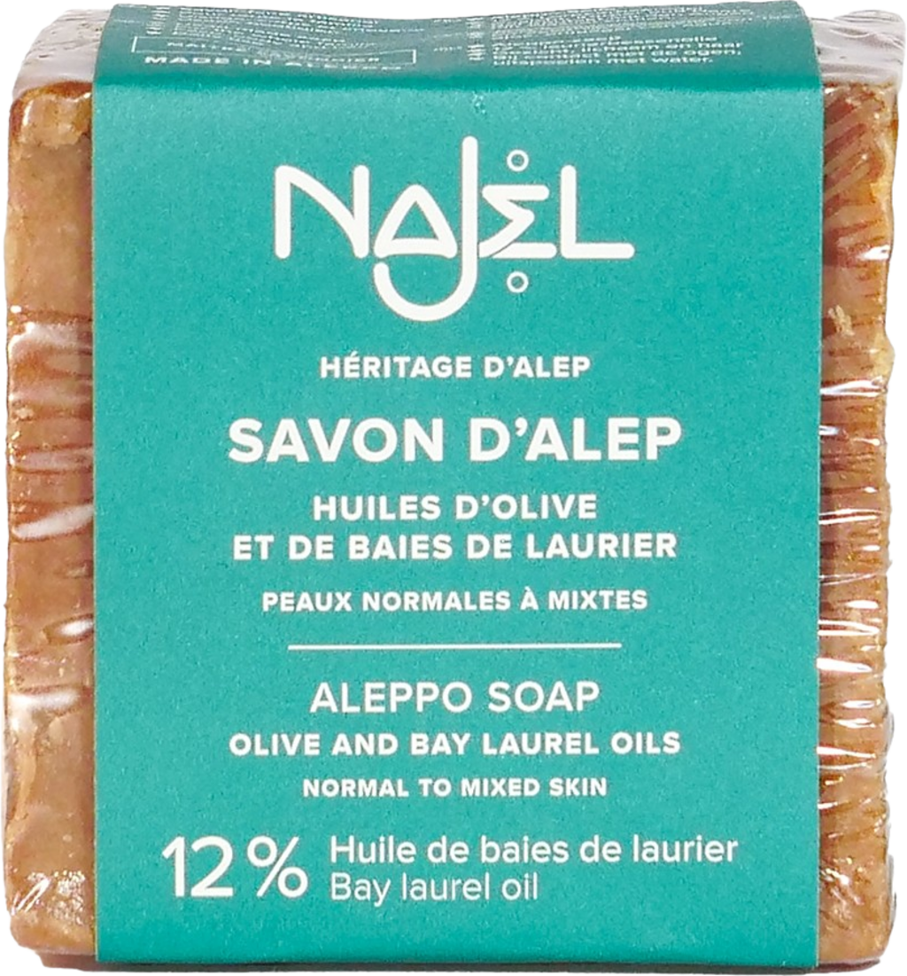 Toto mydlo Aleppo vyživuje a hydratuje pokožku vďaka synergii výživného olivového oleja a regeneračného oleja z bobkového listu. Vďaka pomeru týchto dvoch olejov je mydlo ideálne na každodenné čistenie normálnej a zmiešanej pokožky. Obsahuje 12 % oleja z bobkových listov.