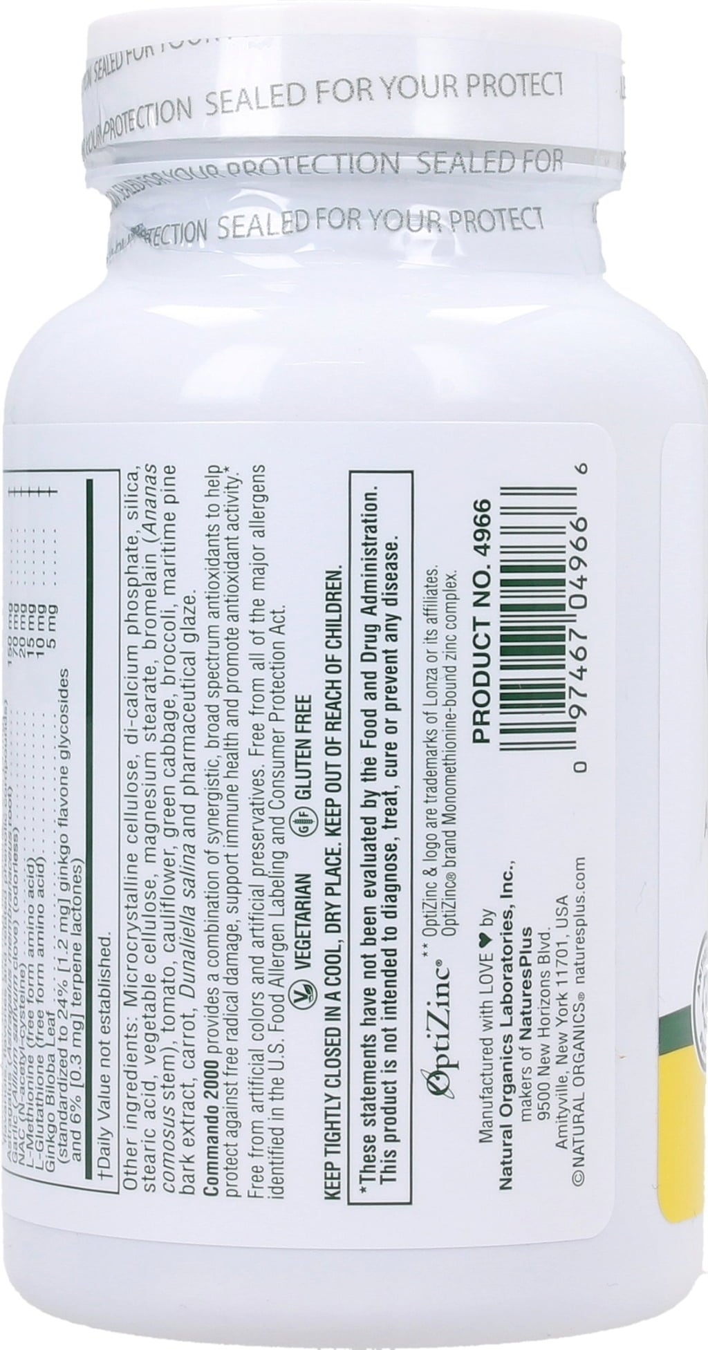 Mikrokryštalická celulóza, Vitamín B5 (D-pantotenát vápenatý), Kyselina kremičitá (oxid kremičitý), Kyselina stearová, Stearan horečnatý, Mrkva, Dunaliella salina riasa, Borovica prímorská, Rastlinné enzýmy (Kataláza, Glukóza oxidáza, Peroxidáza), Brokolica, Kel, Karfiol, Paradajky, Farmaceutická glazúra (zo stromovej živice)