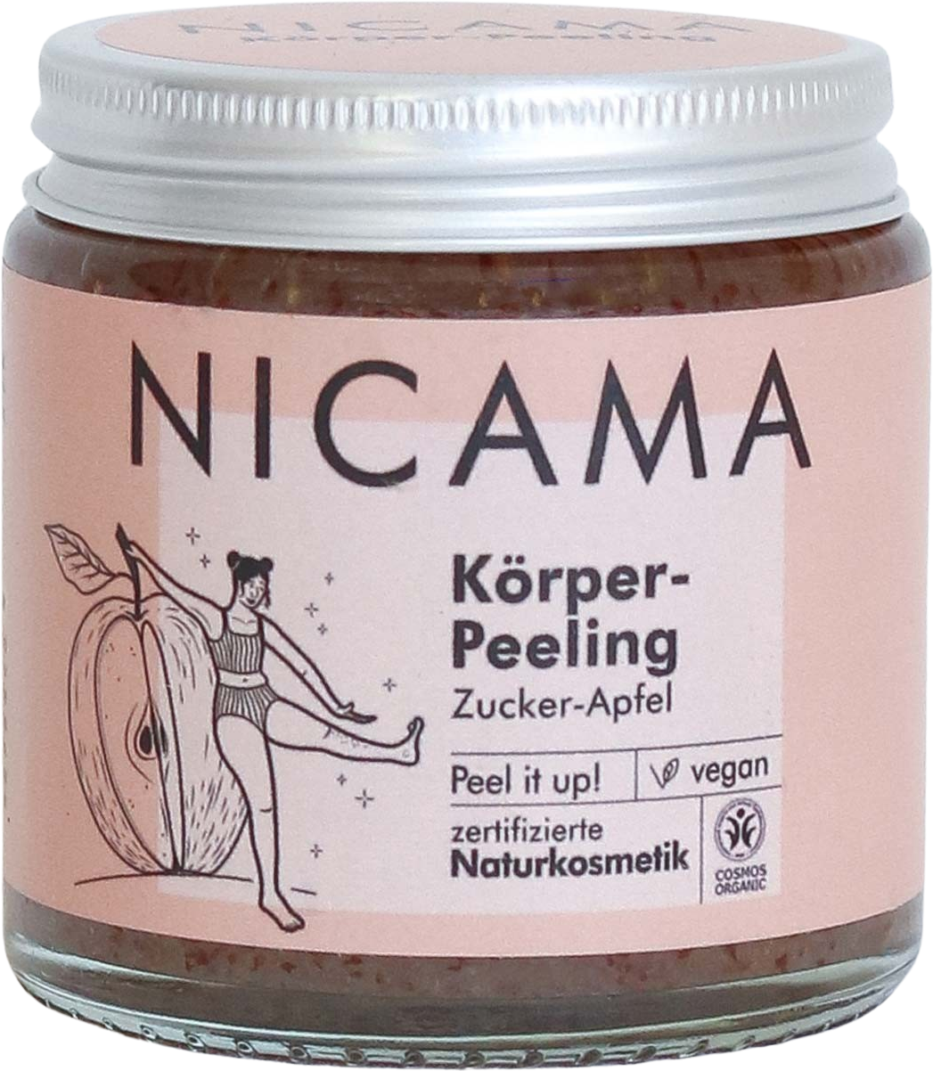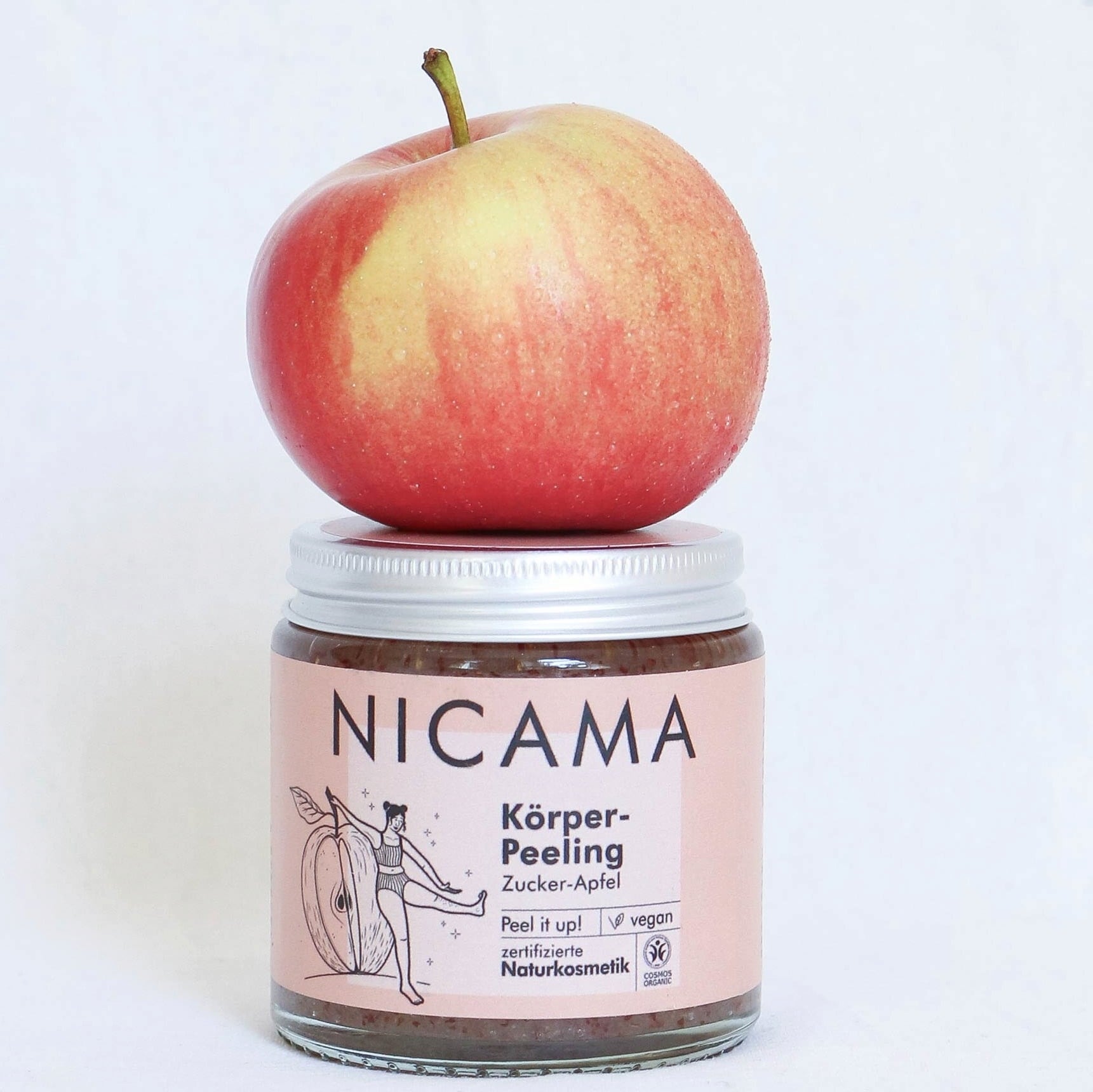 NICAMA Cukrovo-jablkový telový peeling, 140 g