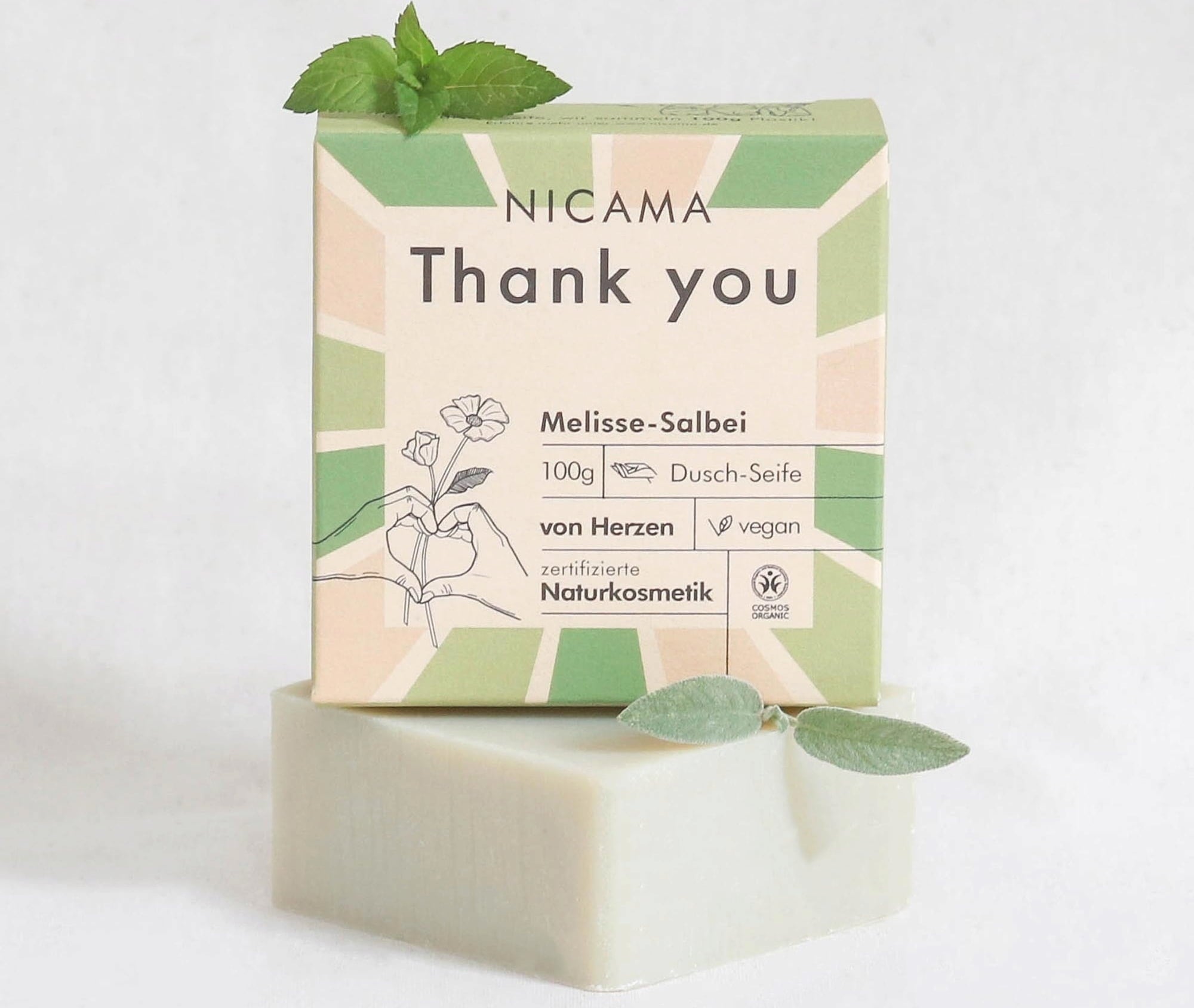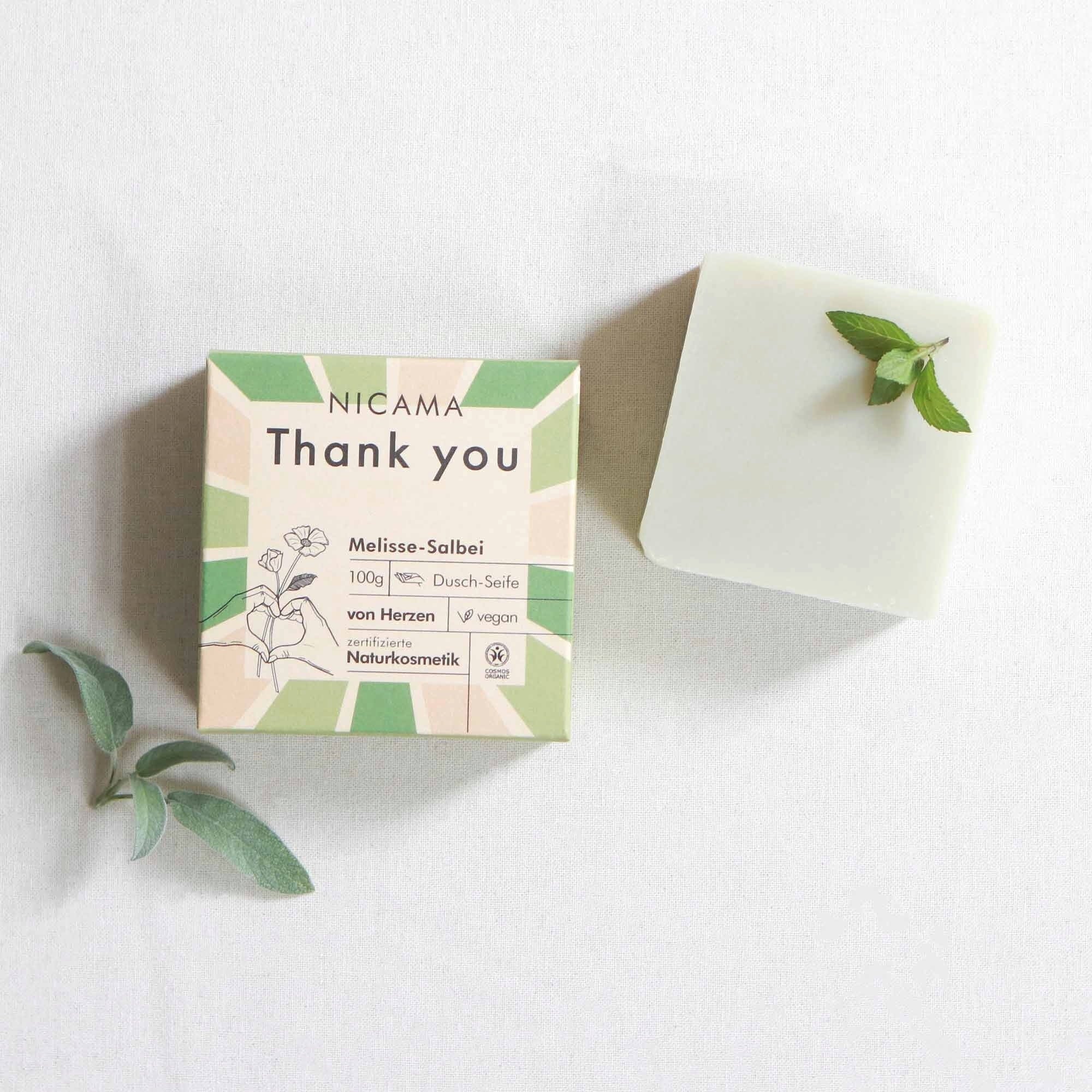 NICAMA Mydlo na sprchovanie s medovkou a šalviou "Thank you", 100 g
