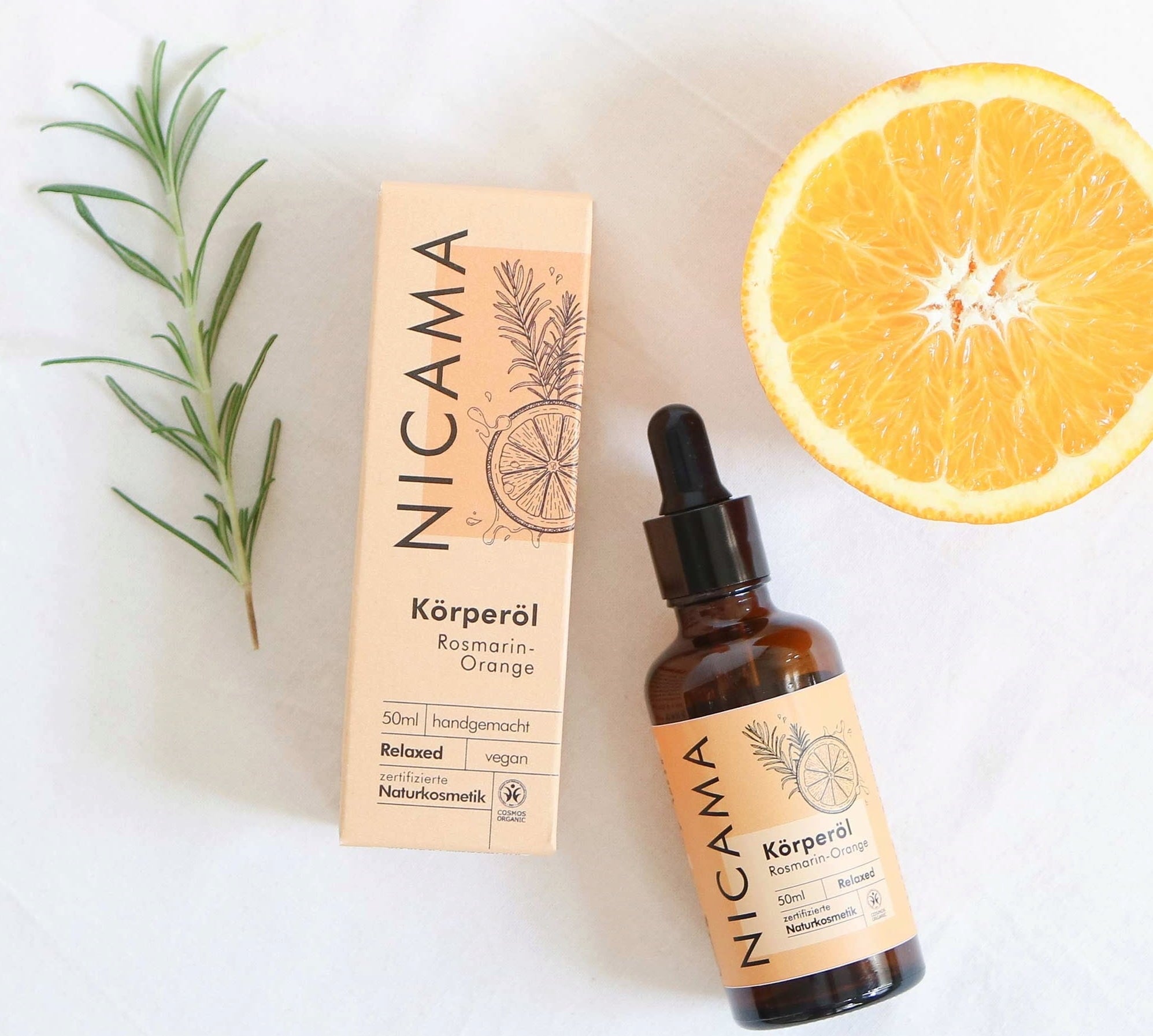 NICAMA Telový olej s rozmarínom a pomarančom, 50 ml