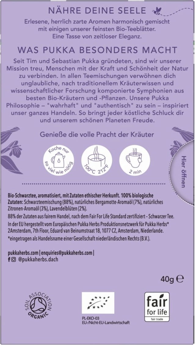 Pukka Bio čierny čaj Earl Grey, 20 čajových vrecúšok (40 g)
