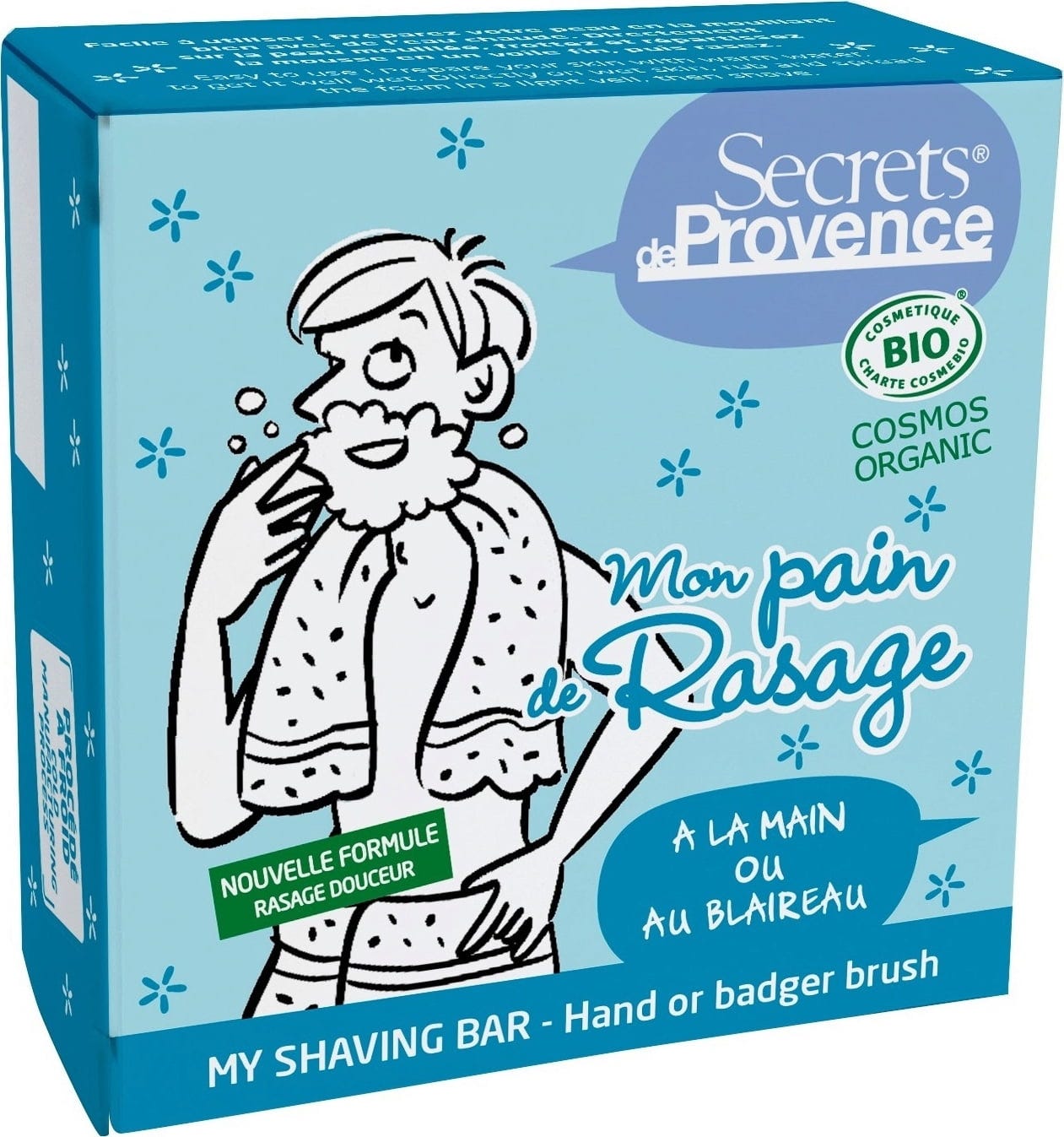 Tento inovatívny produkt od Secrets de Provence vytvára po zmiešaní s vodou jemnú, hodvábnu penu. Jeho mimoriadne jemné zloženie obsahuje bio glycerín, bio bambucké maslo a bio aloe vera. Praktický formát holiaceho bloku umožňuje rýchle a jednoduché použitie. Krémová pena zároveň zanecháva pokožku nádherne jemnú a zabraňuje jej podráždeniu.