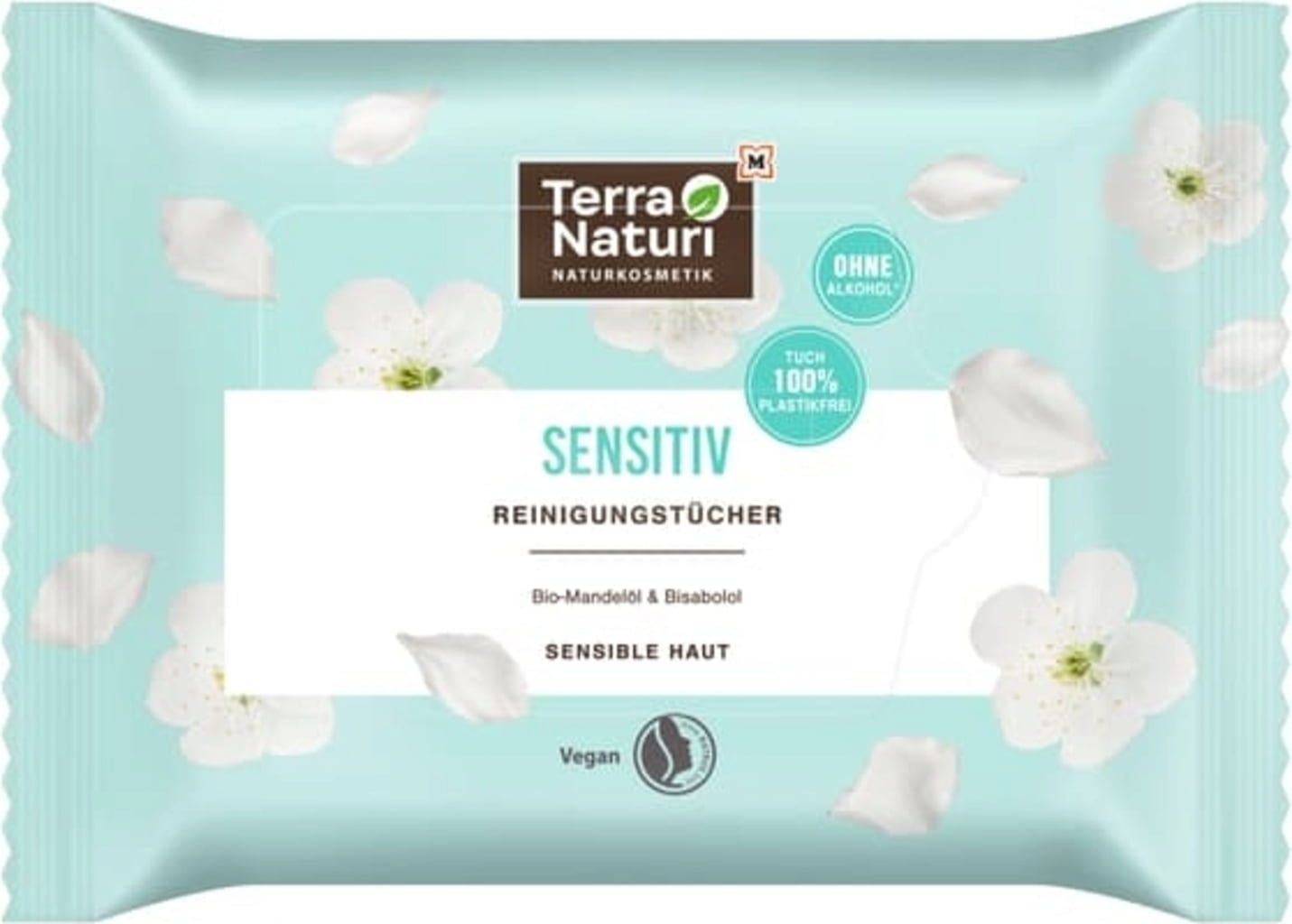 Čistiace obrúsky SENSITIVE od Terra Naturi jemne čistia pokožku tváre. Spoľahlivo odstraňujú make-up a nečistoty bez parfumácie a etanolu a bez vysušovania pokožky. Cenný bio mandľový olej a bisabolol počas používania ošetrujú pleť a podporujú jej hydratáciu.