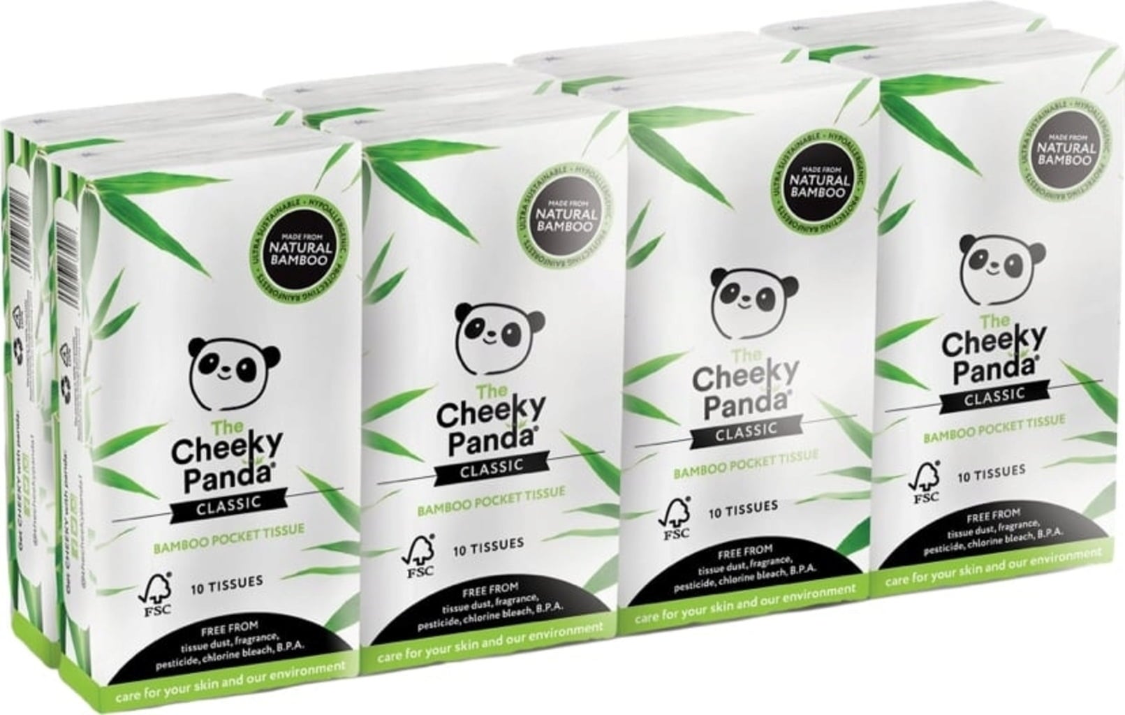 Tieto hypoalergénne vreckovky sú odolné proti roztrhnutiu a jedinečne mäkké - sú ideálnym spoločníkom na cesty. Prírodné zloženie vreckoviek obsahuje menej tkanivového prachu a je šetrné k citlivej pokožke. 100 % čistá bambusová celulóza z pestovania s certifikátom FSC® je navyše kompostovateľná a po krátkom čase sa biologicky rozloží. Ekologická šetrnosť je jednoducho príjemná!