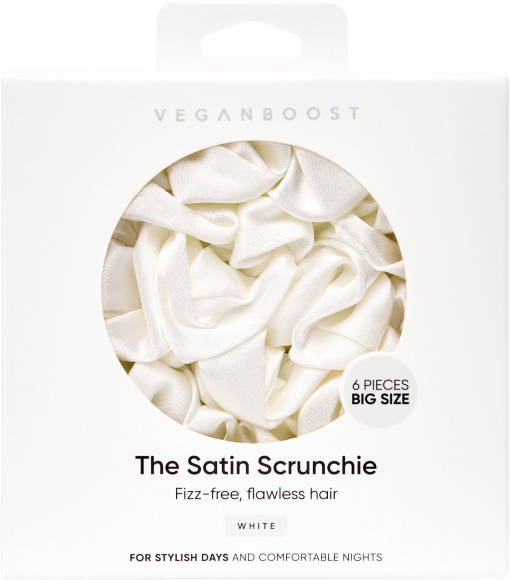 Veganboost Saténové gumičky do vlasov (veľké), biela (6 ks)
