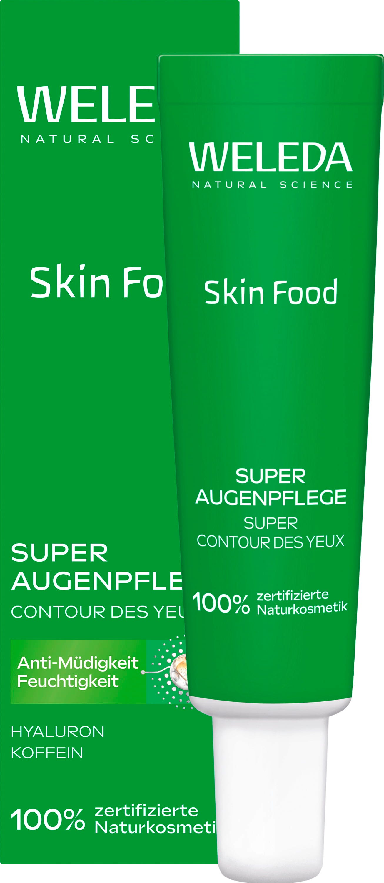 Super Eye Cream z rady Skin Food revitalizuje unavené oči. Vďaka svojmu zloženiu s kofeínom, kyselinou hyalurónovou a Skin Food Phyto-Infusion hydratuje a vyživuje jemnú pokožku okolo očí. Pre sviežejší a osvieženejší vzhľad!