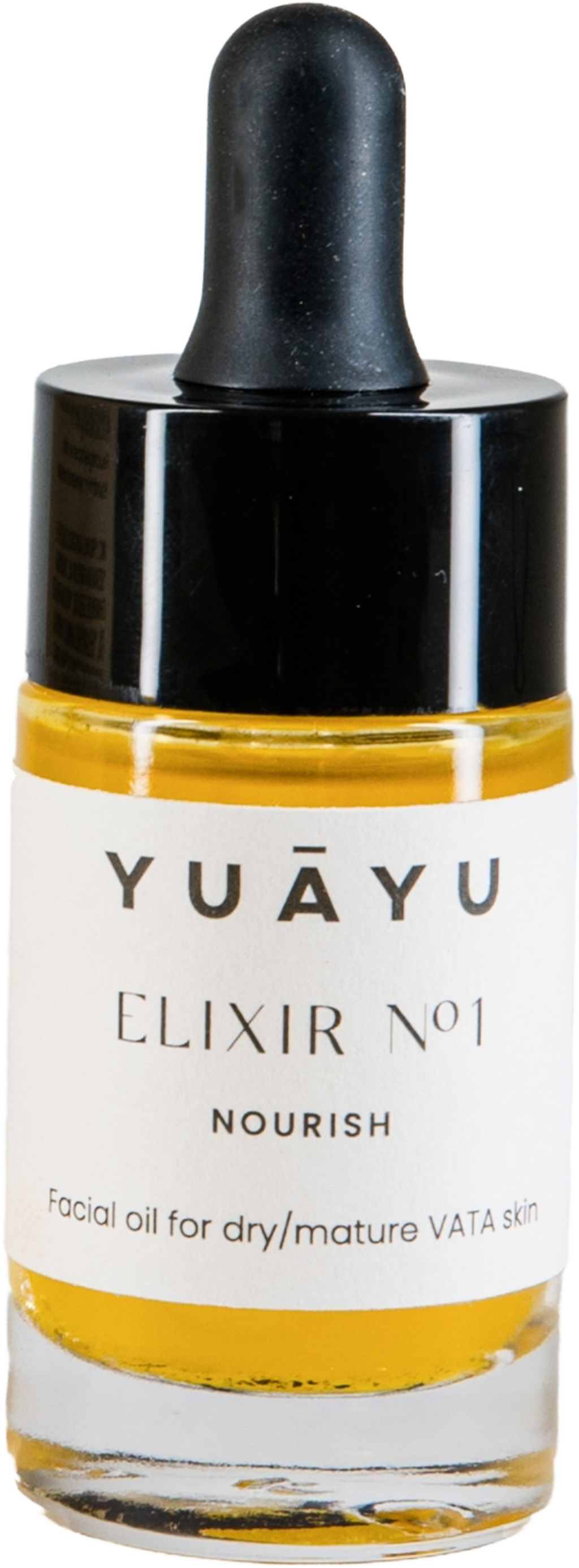 Elixir No. 1 Vata od YUĀYU je ajurvédsky inšpirovaný olej na tvár vyrobený z ručne spracovaných rastlinných olejov a výťažkov, ktorý bol špeciálne vyvinutý pre suchú a zrelú pleť typu váta. Bohaté zloženie s výťažkom z pupalky dvojročnej, sezamovým, brokolicovým a malinovým olejom, ako aj bakuchiolom a vysokokvalitným výťažkom z rias intenzívne vyživuje pokožku, podporuje jej prirodzenú regeneráciu a zanecháva ju príjemne pružnú. Príjemný zážitok zo starostlivosti o pokožku zabezpečuje aj jemná vôňa ruže, amyrisu a sladkého pomaranča.