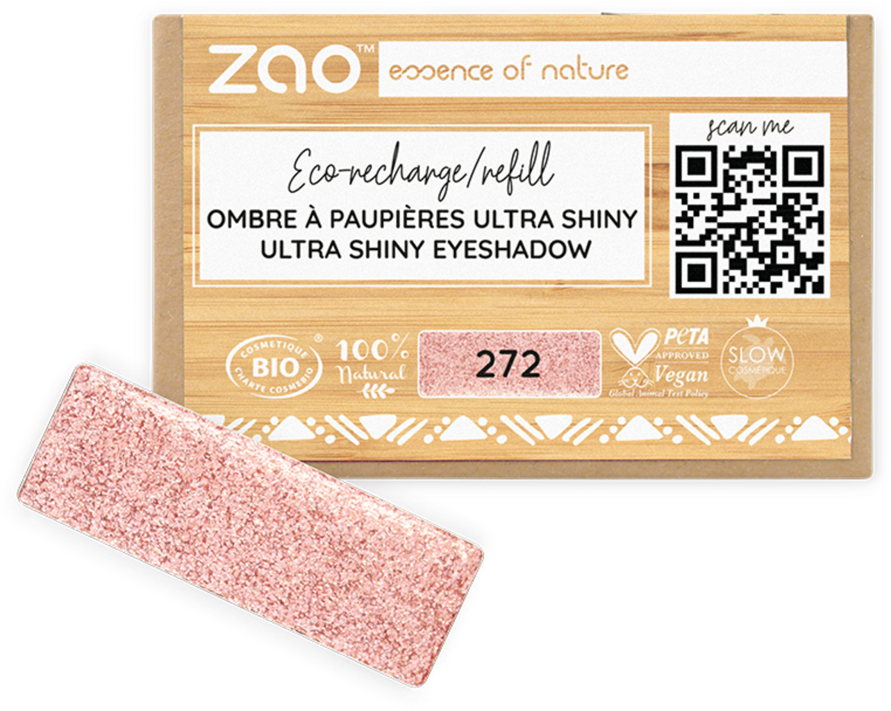 Zao Refill Rectangle Eye Shadow, 272 Ultra Pearly Fairy Pink (1,30 g)