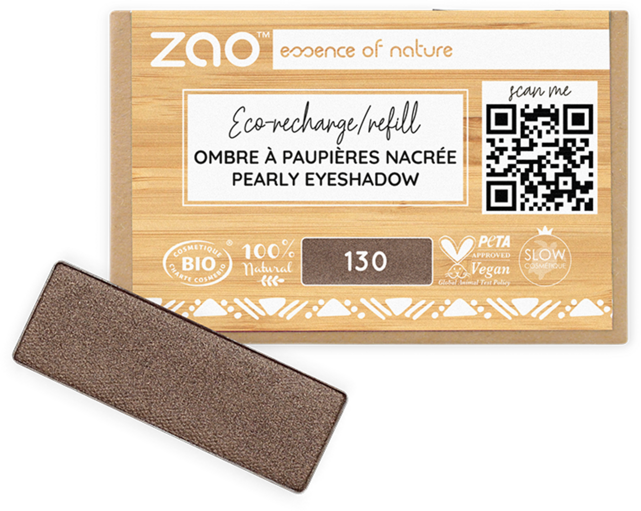 Zao Refill Rectangle Eye Shadow, 130 Intense Brown (1,30 g)