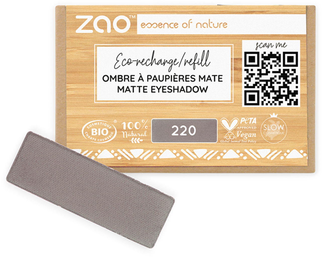 Zao Refill Rectangle Eye Shadow, 220 Taupe Grey (1,30 g)
